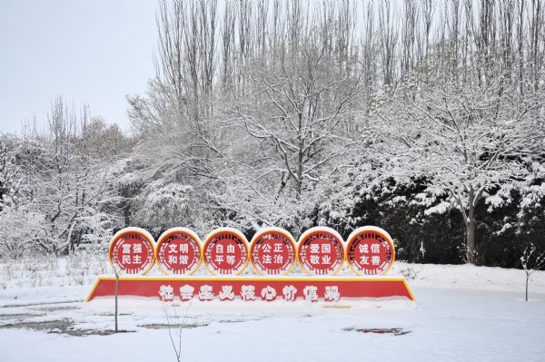 初冬的雪,洋洋灑灑下了整天。雪后的清晨,初升的太陽(yáng)為銀裝素裹的普安鑲上金邊。