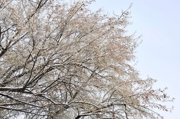 冬雪,為尚未落去的柳葉掛上晶瑩;為常青的松柏蓋上棉被。一切都顯得恬靜、素雅,唯一能聽到的便是咯吱作響的腳步聲,并不吵鬧,卻為這寒冷、靜謐的清晨增添了一份樂(lè)趣。