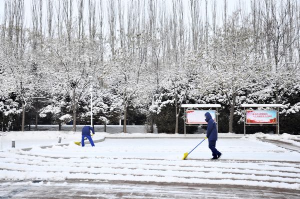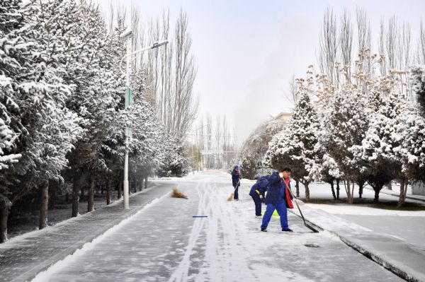 雪后清晨,為了職工安全,方便出行。公司干部職工紛紛拿著鏟雪鐵鍬、掃帚等工具開始清理路面積雪。大家不懼嚴(yán)寒、互相協(xié)作,井然有序的清掃著道路積雪。轉(zhuǎn)眼間,往日干凈整潔的馬路又恢復(fù)了原貌。