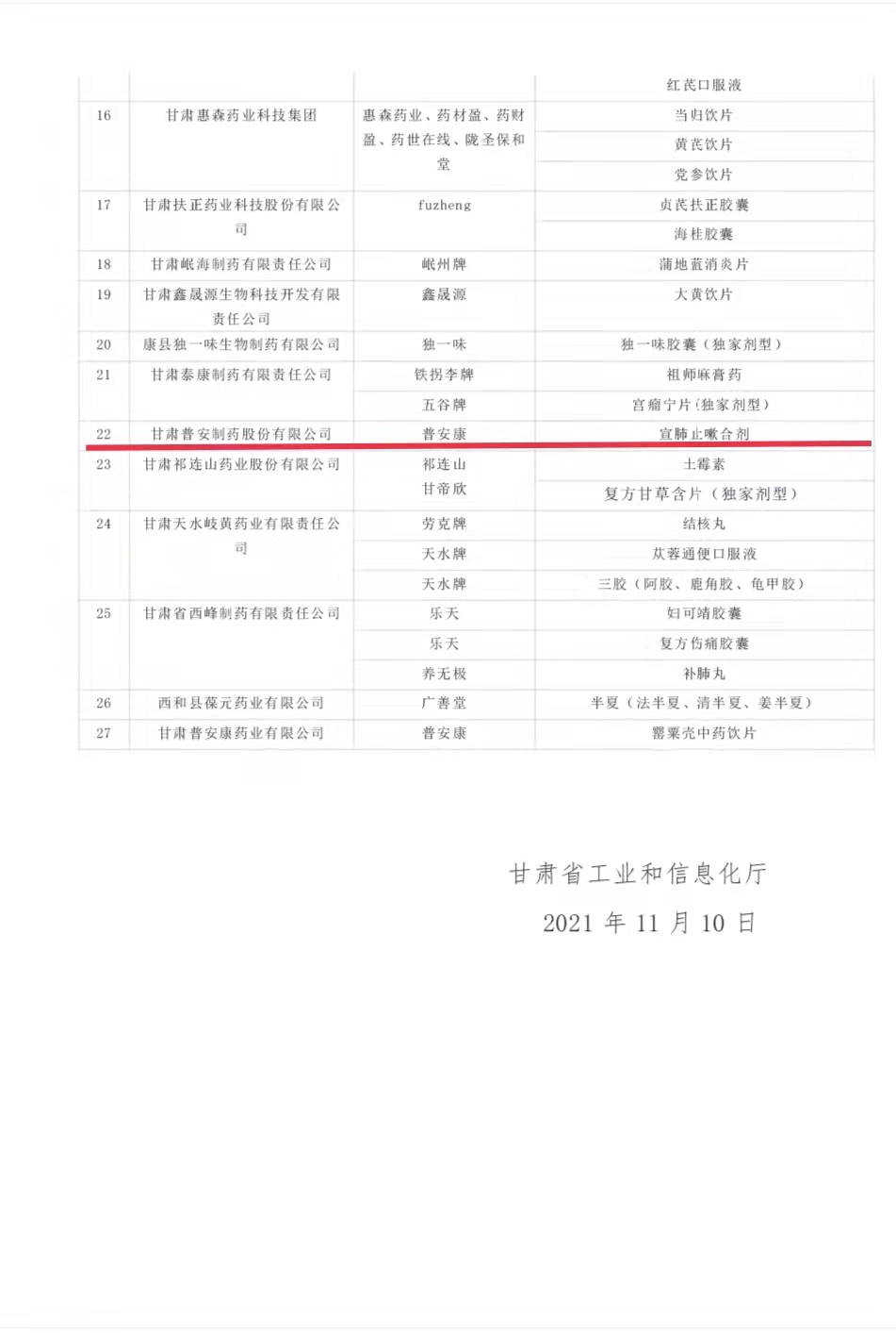 喜報!喜報!宣肺止嗽合劑進入隴藥大品種大品牌培育目錄(2021版)