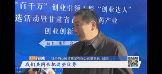 甘肅藥業投資集團魏陽董事長以特邀嘉賓身份出席此次中醫藥創業創新大賽開幕典禮,在觀展后被甘肅省廣播電視總臺、視聽甘肅、今日頭條、甘肅青春調頻等眾多媒體邀請,就關于此次中醫藥產業創業創新大賽做了相關的采訪。