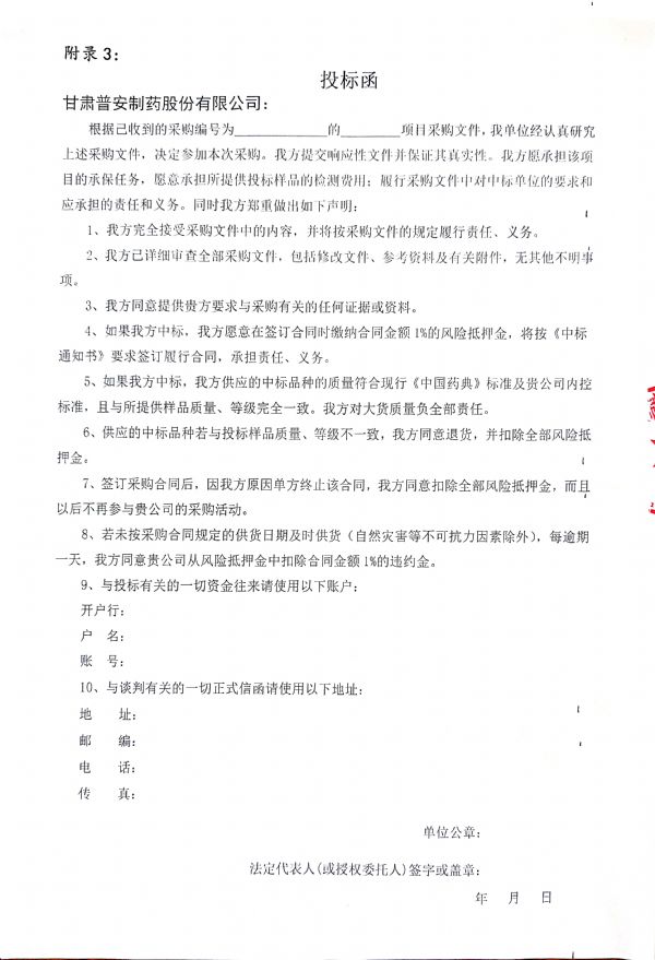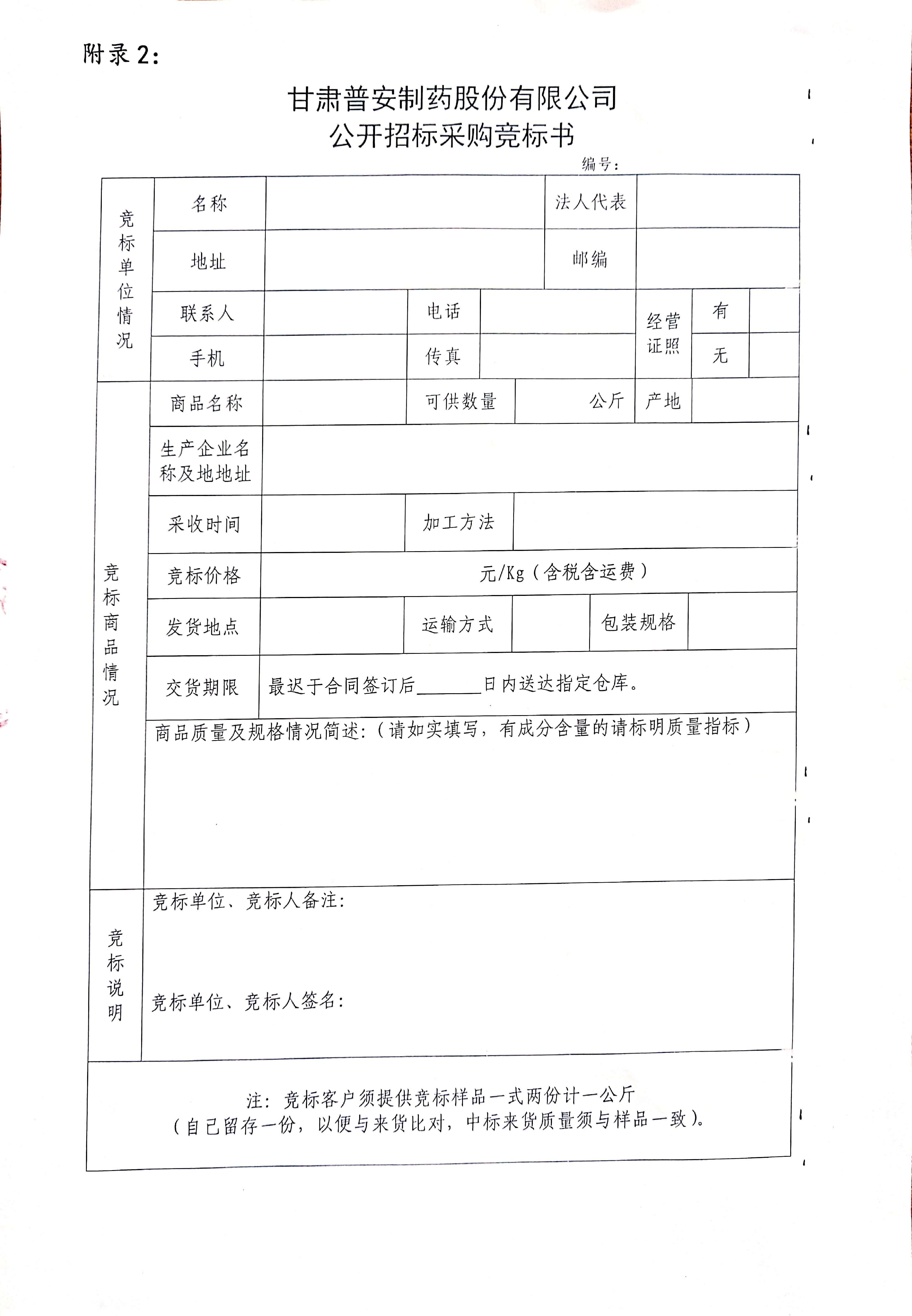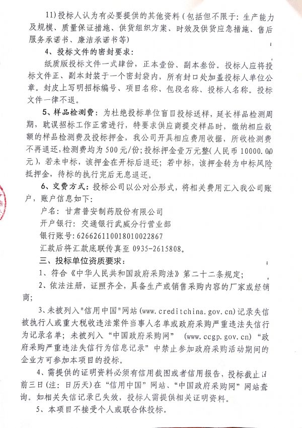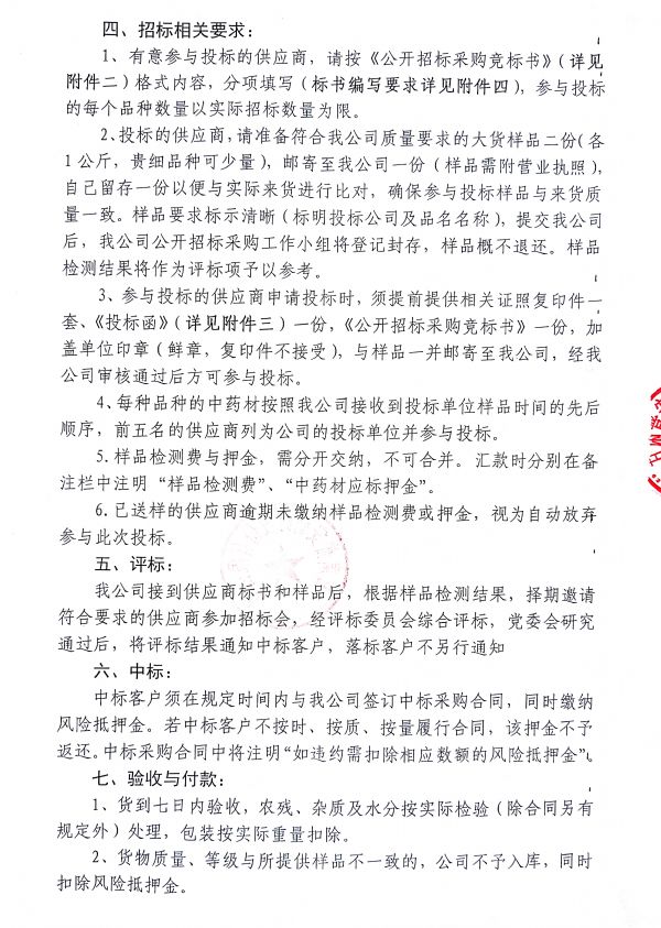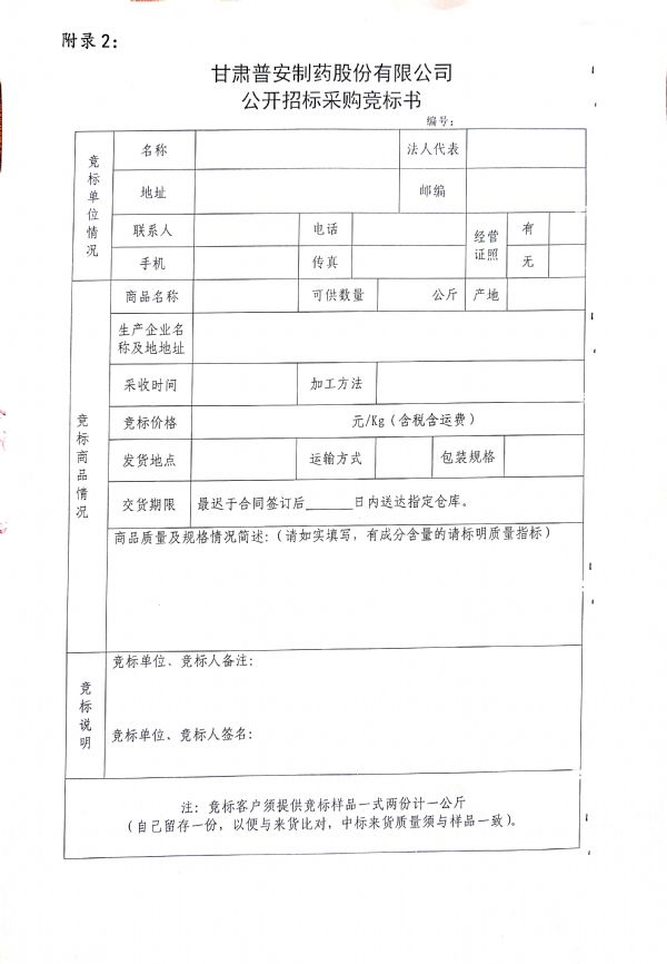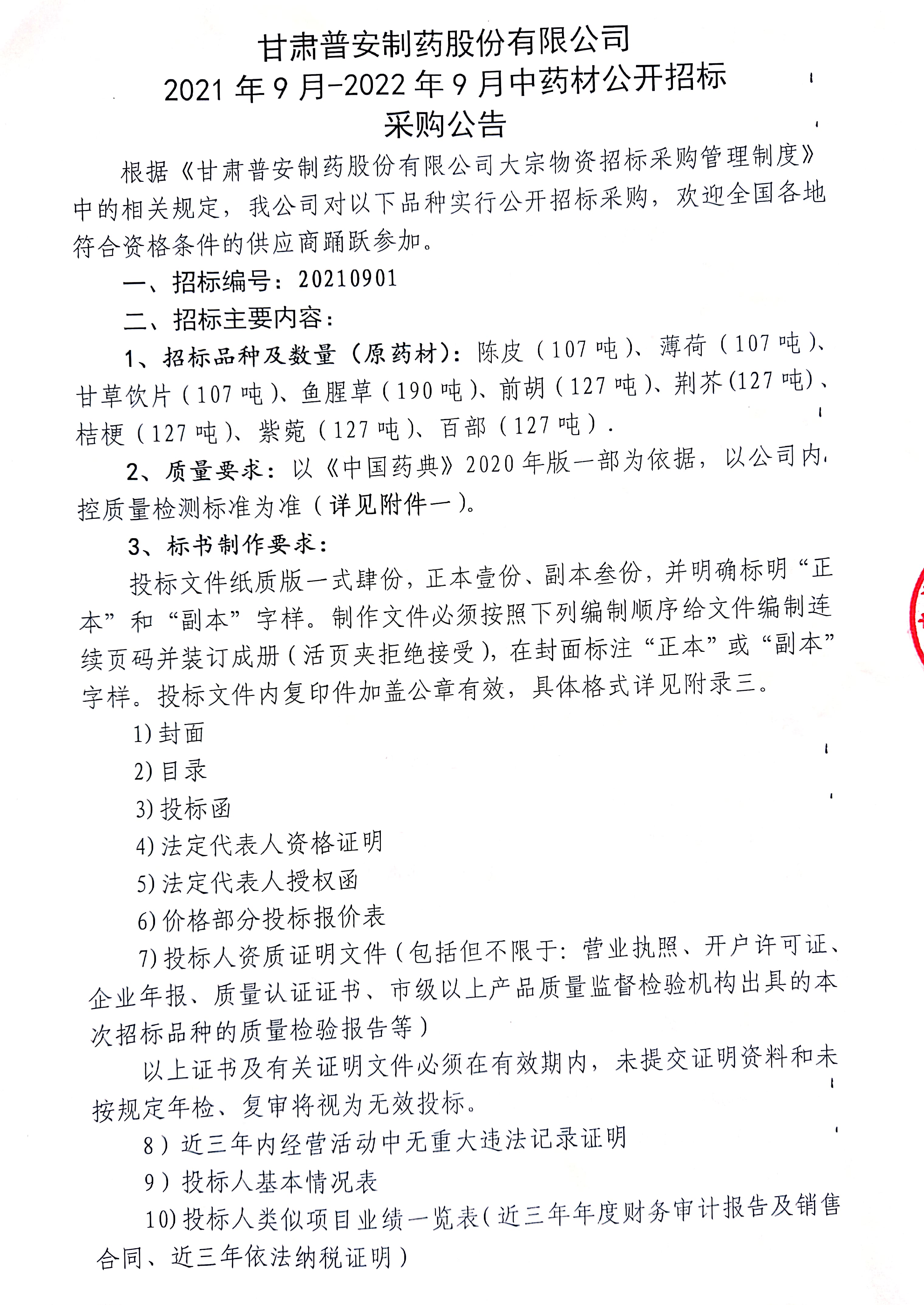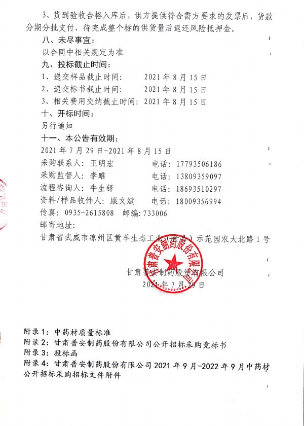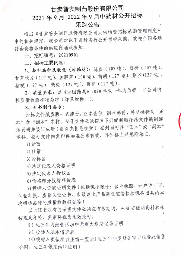 甘肅普安制藥股份有限公司 2021年9月-2022年9月中藥材公開招標(biāo)采購公告