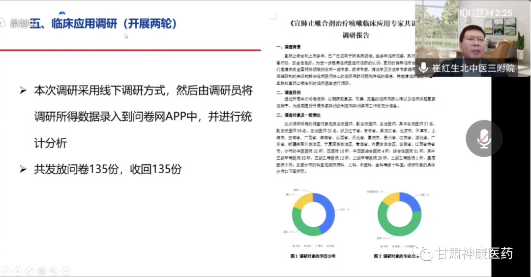 最后,崔教授對宣肺止嗽合劑在新冠肺炎疫情防控中展示出了獨特的治療價值和國藥魅力做了介紹,宣肺止嗽合劑在2022年3月,分別被列入《上海市新型冠狀病毒感染中醫藥診療專家共識》(2022年春季版)與《甘肅省新型冠狀病毒肺炎中醫藥防治方案(第四版)》。并于2022年5月,在上海中醫藥大學附屬曙光醫院開展了宣肺止嗽合劑治療新型冠狀病毒肺炎真實世界的相關研究,為后期循證證據搭建提供研究思路。