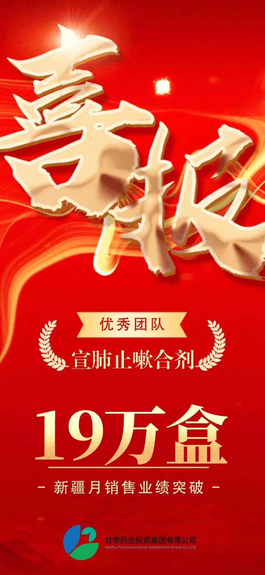 喜報(bào)!宣肺止嗽合劑新疆月銷售業(yè)績(jī)突破19萬(wàn)盒