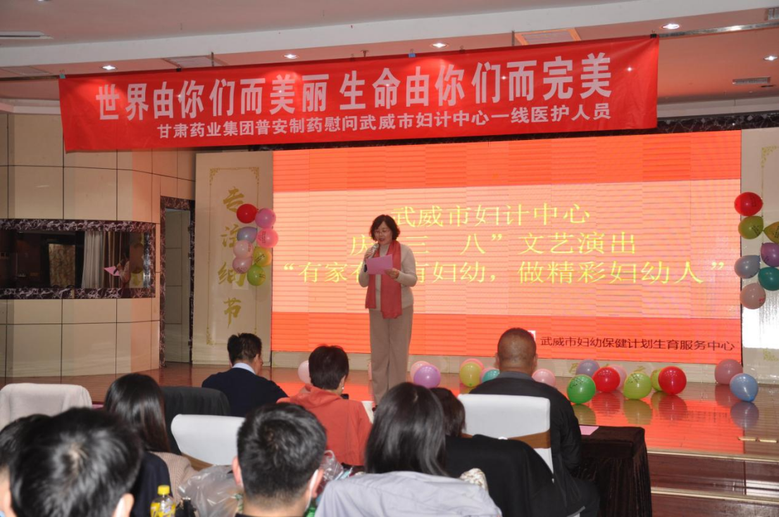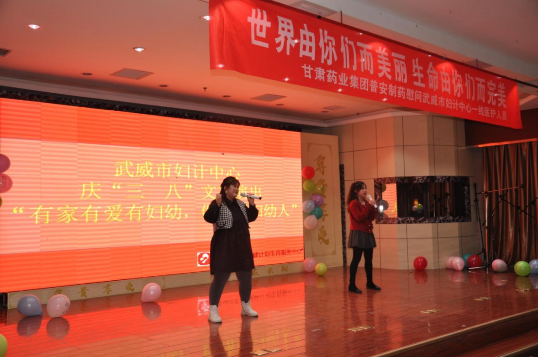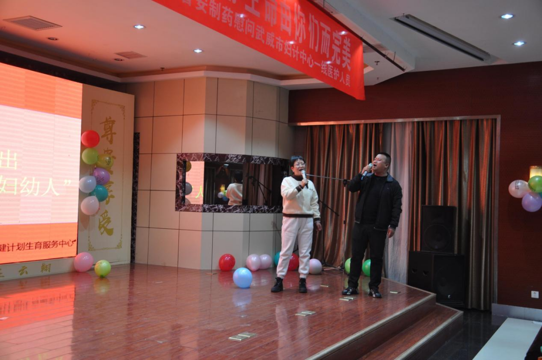 慰問當天,正值武威市婦計中心舉辦“有家有愛有婦幼,做精彩婦幼人”的文藝晚會。受到婦計中心邀請,公司代表出席活動并致辭,向默默奉獻在各個工作崗位的全體女職工們致以節(jié)日的問候和誠摯的祝福。活動現(xiàn)場氣氛高漲、晚會節(jié)目豐富多彩,引來陣陣掌聲與歡呼聲。在現(xiàn)場觀眾的強烈要求下,公司代表分別為現(xiàn)場的觀眾獻上了歌曲《再見,大別山》和《精忠報國》,將現(xiàn)場的氣氛推到了高潮。