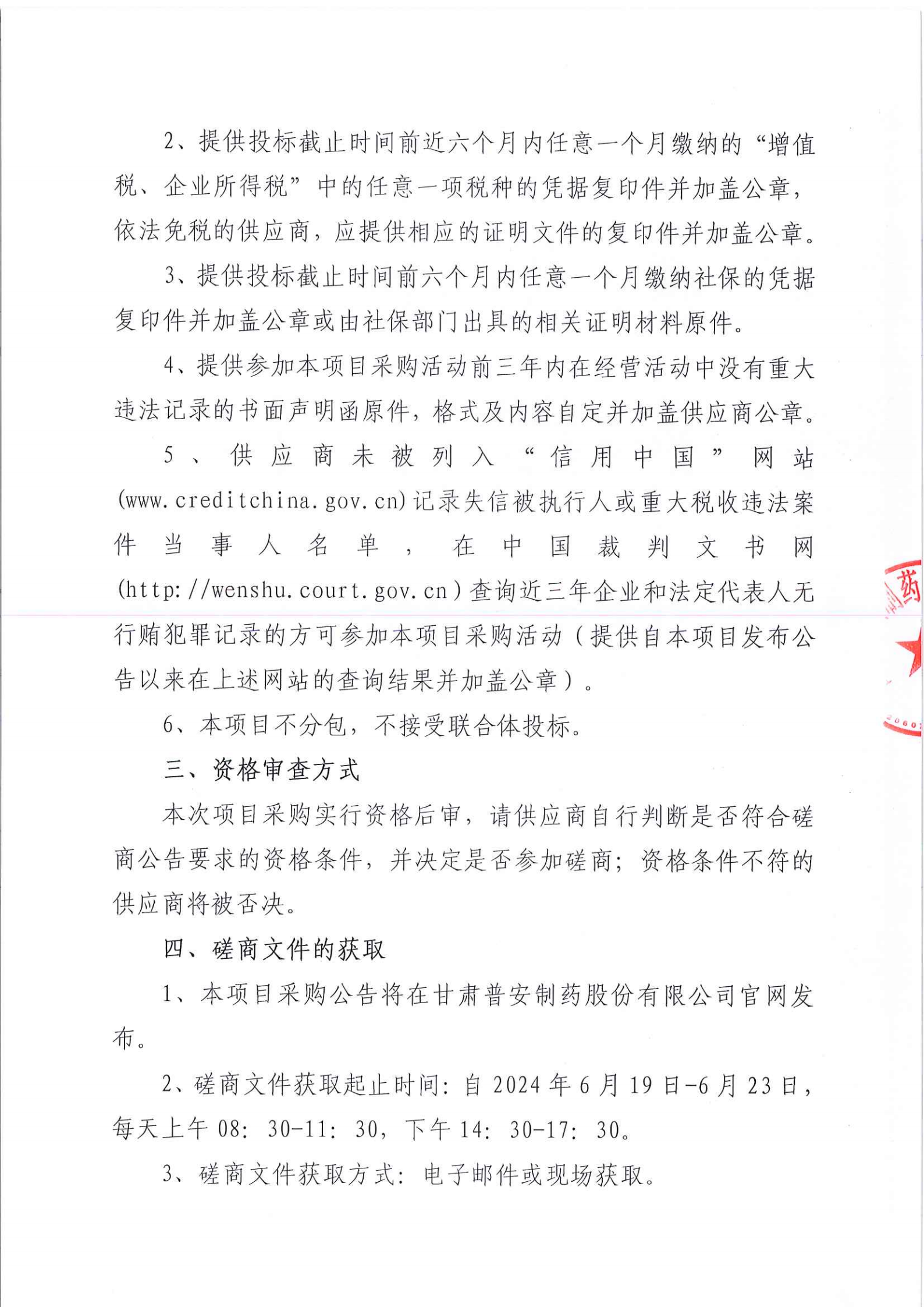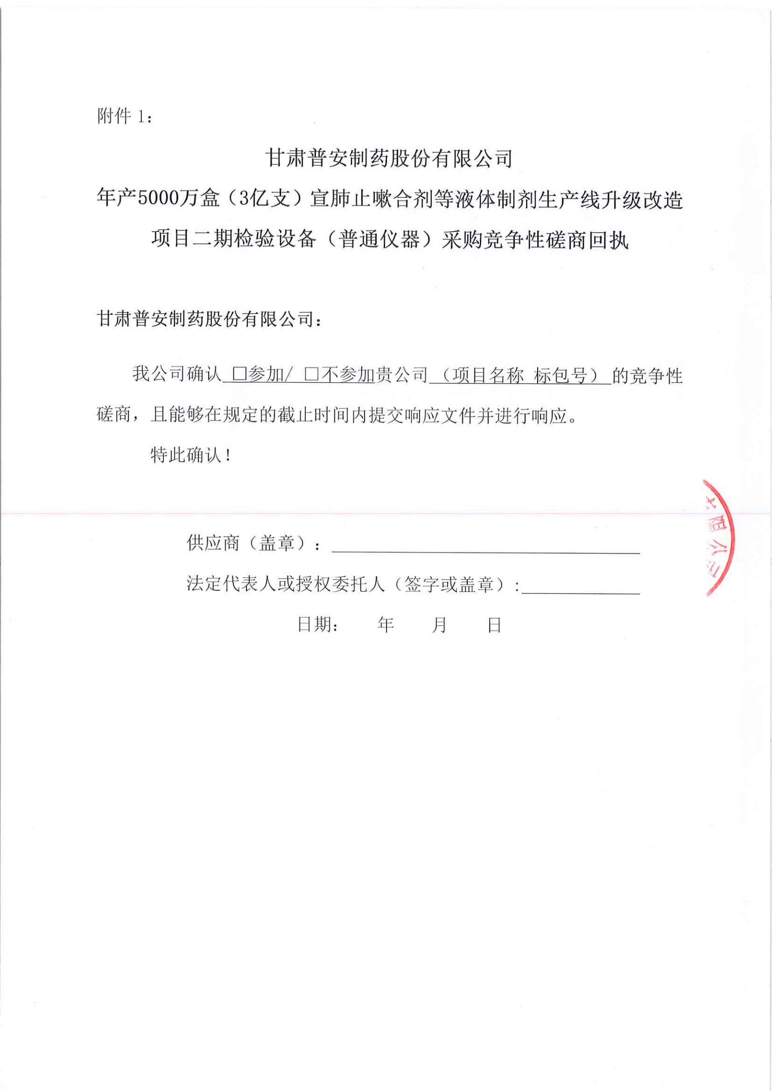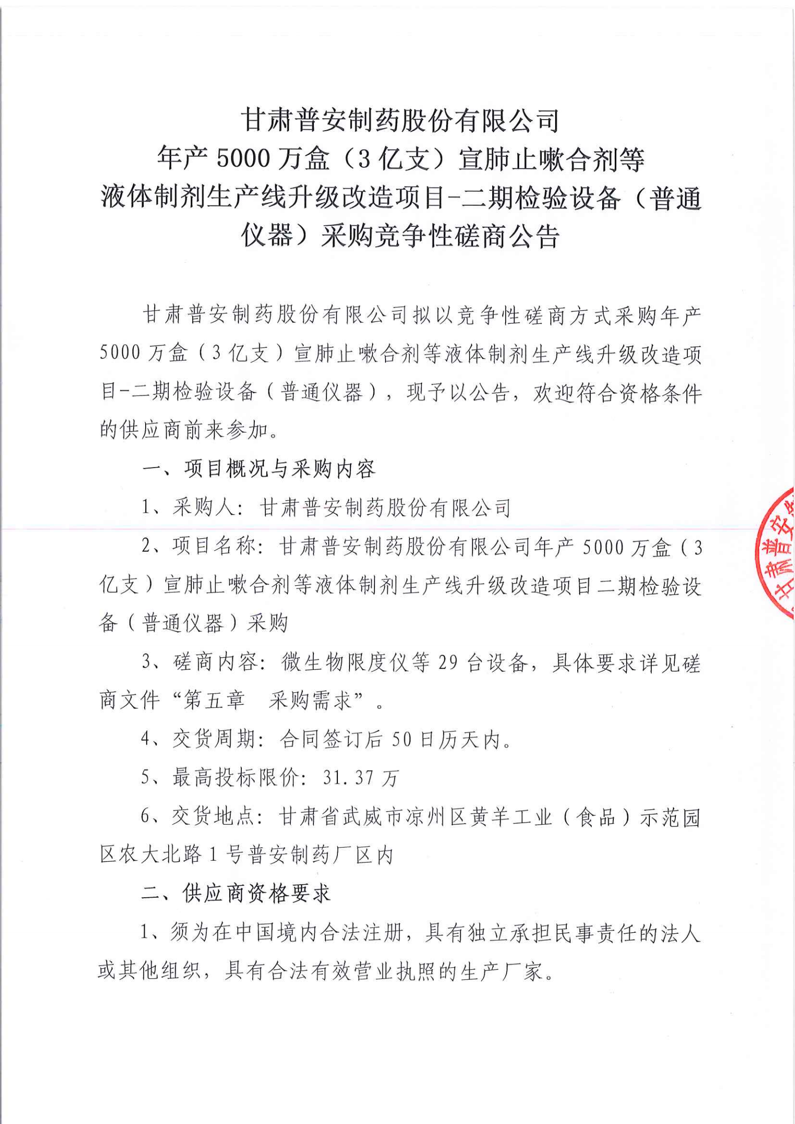 甘肅普安制藥股份有限公司年產(chǎn)5000萬盒(3億支)宣肺止嗽合劑等液體制劑生產(chǎn)線升級改造項目二期檢驗設(shè)備(普通儀器)采購競爭性磋商公告