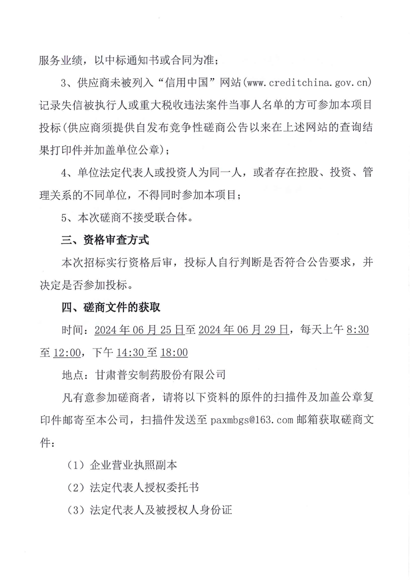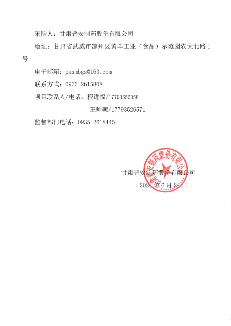 甘肅普安制藥股份有限公司2024年基礎設施改造地溝管道維修更換工程競爭性磋商公告
