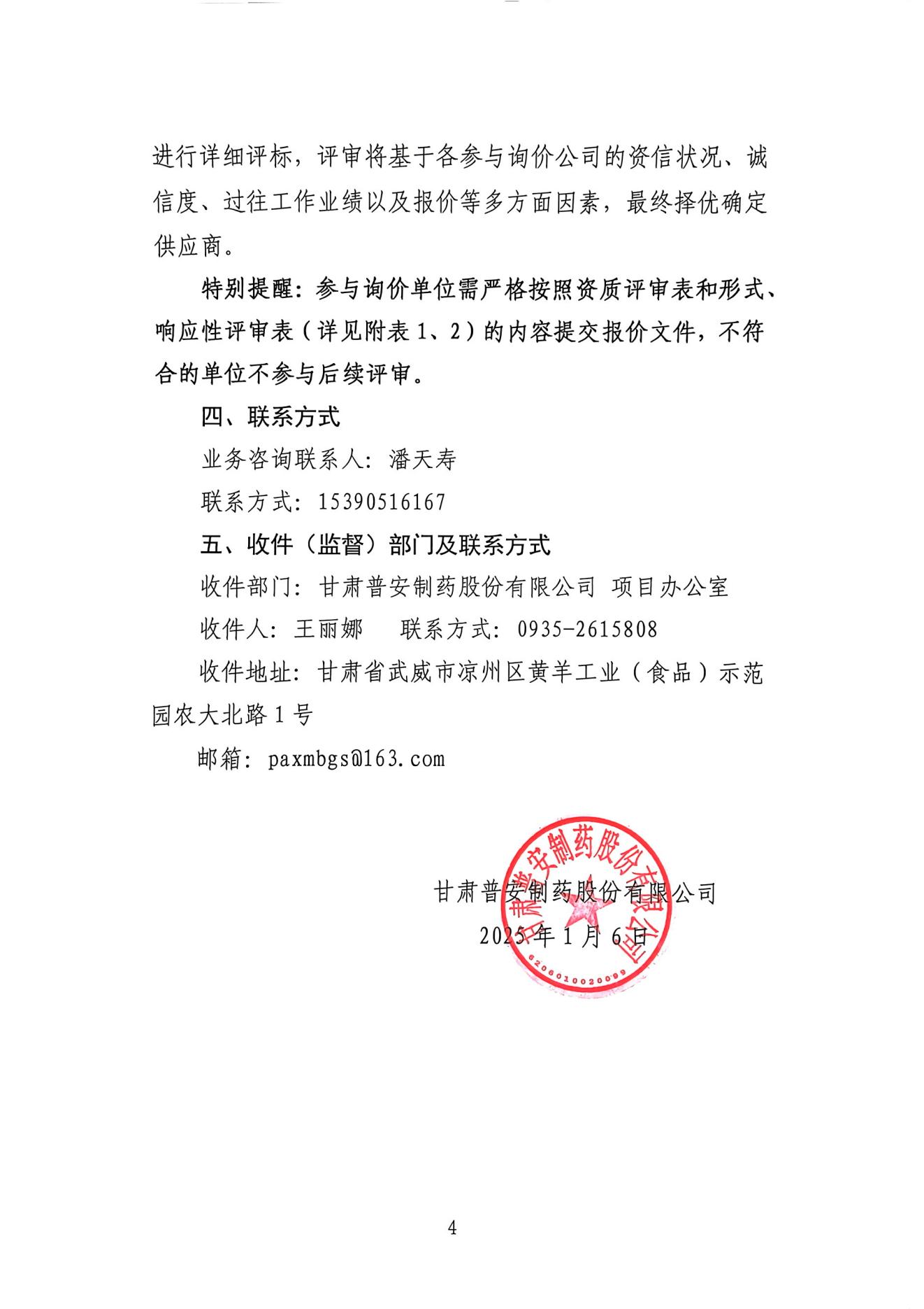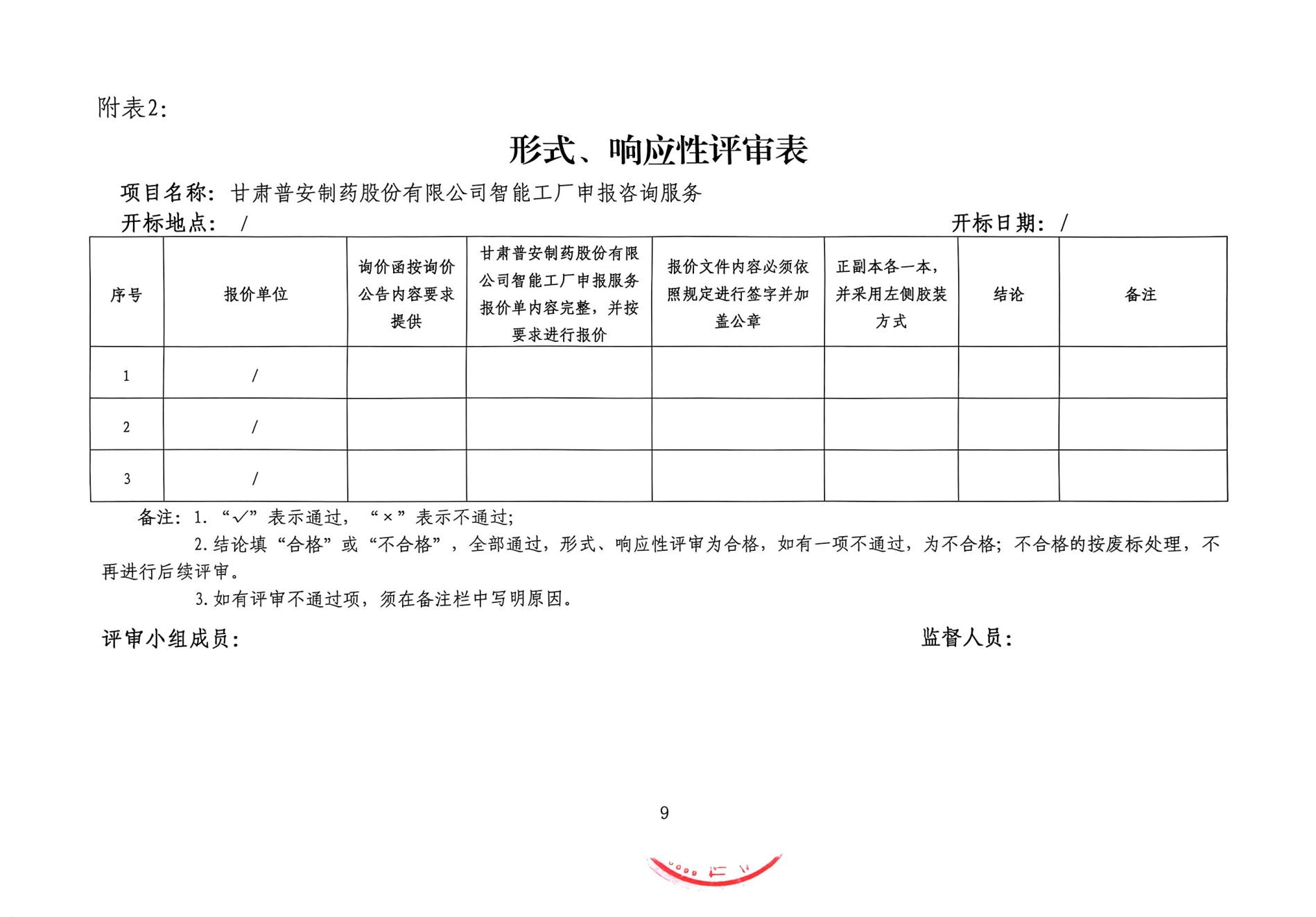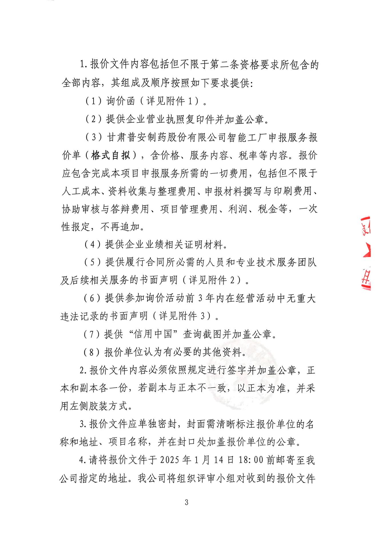 甘肅普安制藥股份有限公司智能工廠申報(bào)咨詢服務(wù)詢價(jià)公告