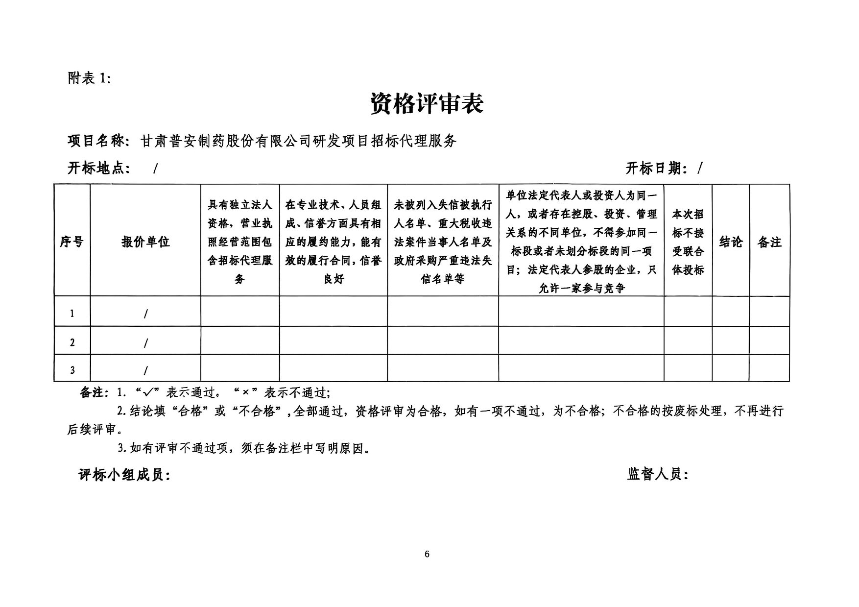 甘肅普安制藥股份有限公司研發項目招標代理服務招標公告
